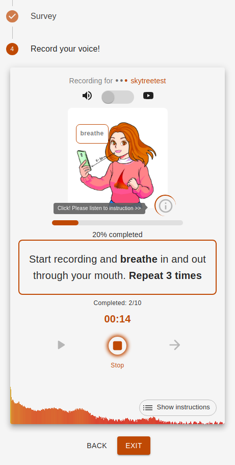 - Proceed to the recording section and carefully follow the instructions to record your voice.