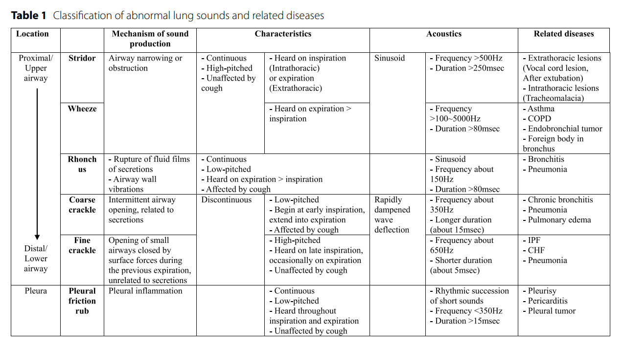 - Kim, Yoonjoo, et al. "The coming era of a new auscultation system for analyzing respiratory sounds." BMC Pulmonary Medicine 22.1 (2022): 119.