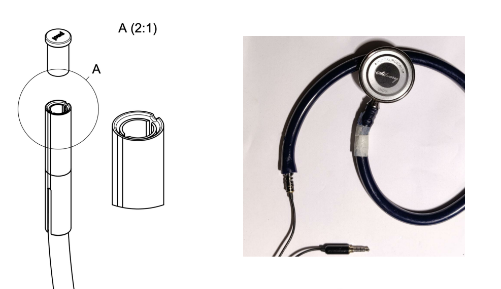 From this design, by positioning the microphone at various lengths from the stethoscope head, it was confirmed that the microphone should be placed as close to the stethoscope tube as possible to capture the breath sounds effectively.