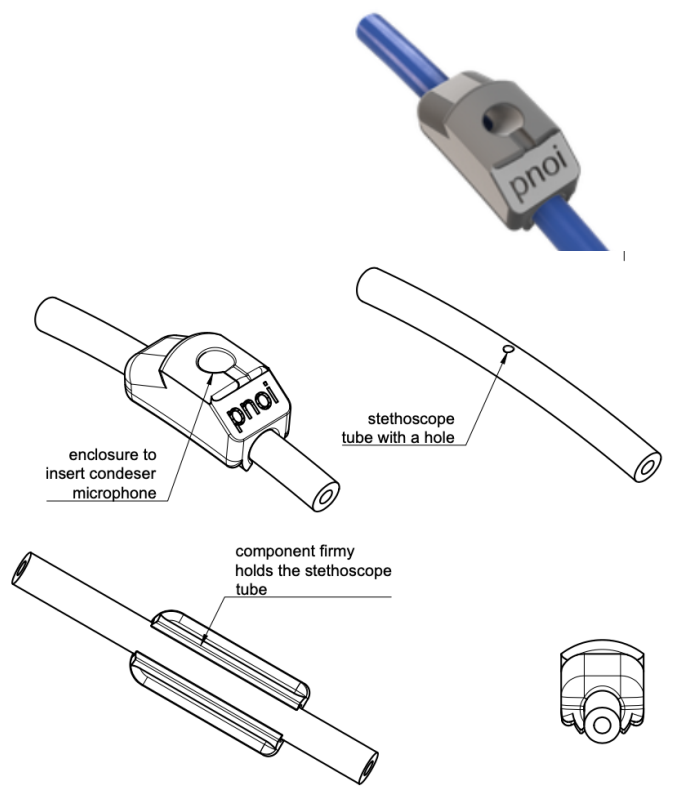 The idea is to place the microphone at the end of the stethoscope tube to capture the breath sounds. The coupler is designed to fit the stethoscope tube and hold the microphone in place.