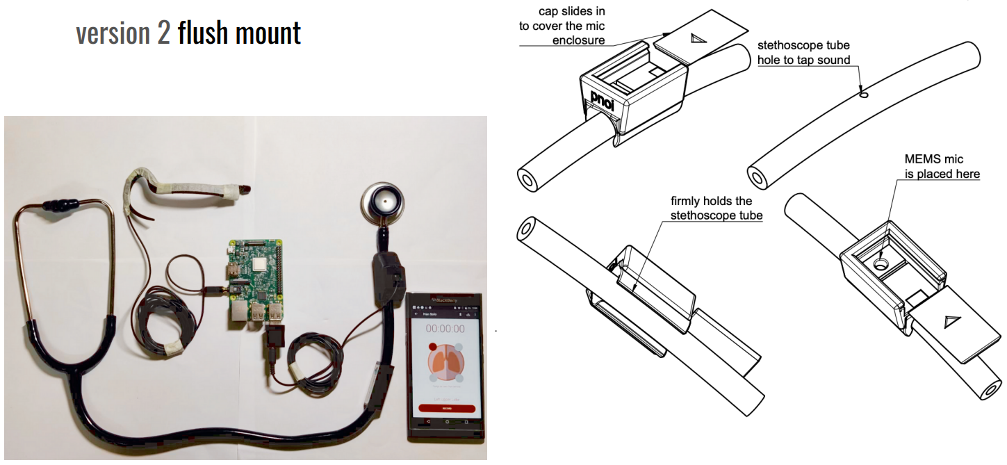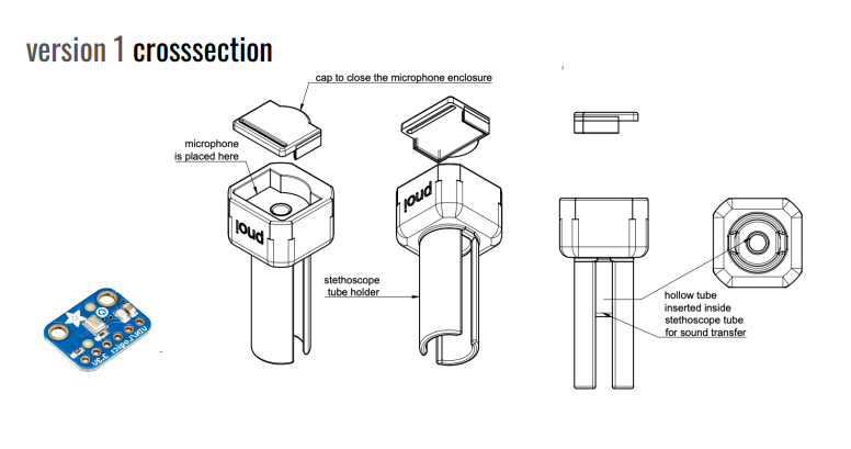 Problem: The microphone placement in this design may not capture the breath sounds effectively due to the distance from the stethoscope tube.