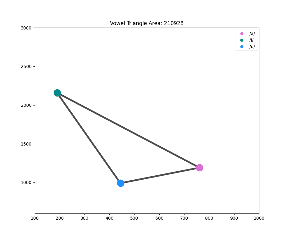 For this project, I used Python with libraries like Librosa to analyze live speech input and extract the first two formant frequencies. The formants are plotted on a vowel quadrilateral in real-time, with the vowel space animated as the user speaks sustained vowels.